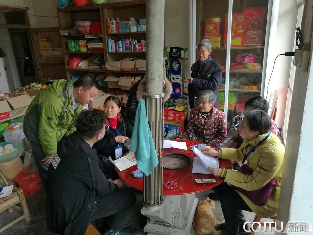 陈作明与经济普查的同志一起走访刚脱贫的个体小商户