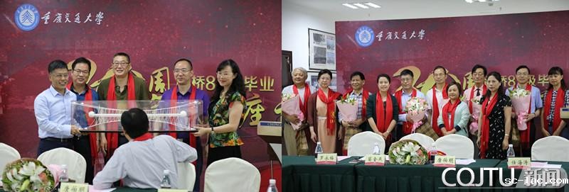 校友代表随后向母校赠送了体现学校办学特色与时代创新发展的3D打印桥梁模型,为到场授业恩师献花。