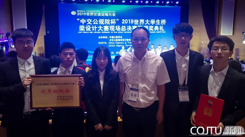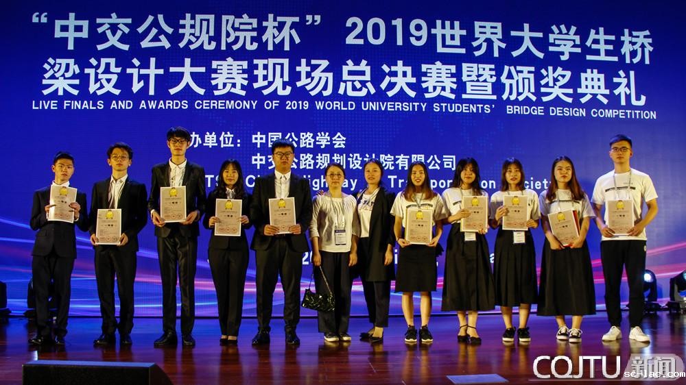 传承文化融合新设计,助推交通强国新战略。我校“交通+艺术”学科交叉融合与人才培养取得新突破,6月16日,在北京国家会议中心举行的2019世界大学生桥梁设计大赛总决赛中,老伟德网上娱乐《霁月》、《“尔”桥》双双荣获一等奖。另有3件作品获三等奖、4件作品获优秀奖,10件作品获入围奖,老伟德网上娱乐获优秀组织奖,周水兴、郭增伟、蔡晓艳、邱巧获优秀指导教师奖。学校获奖等级、数量再创历史新高。