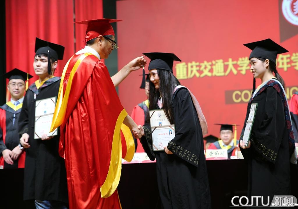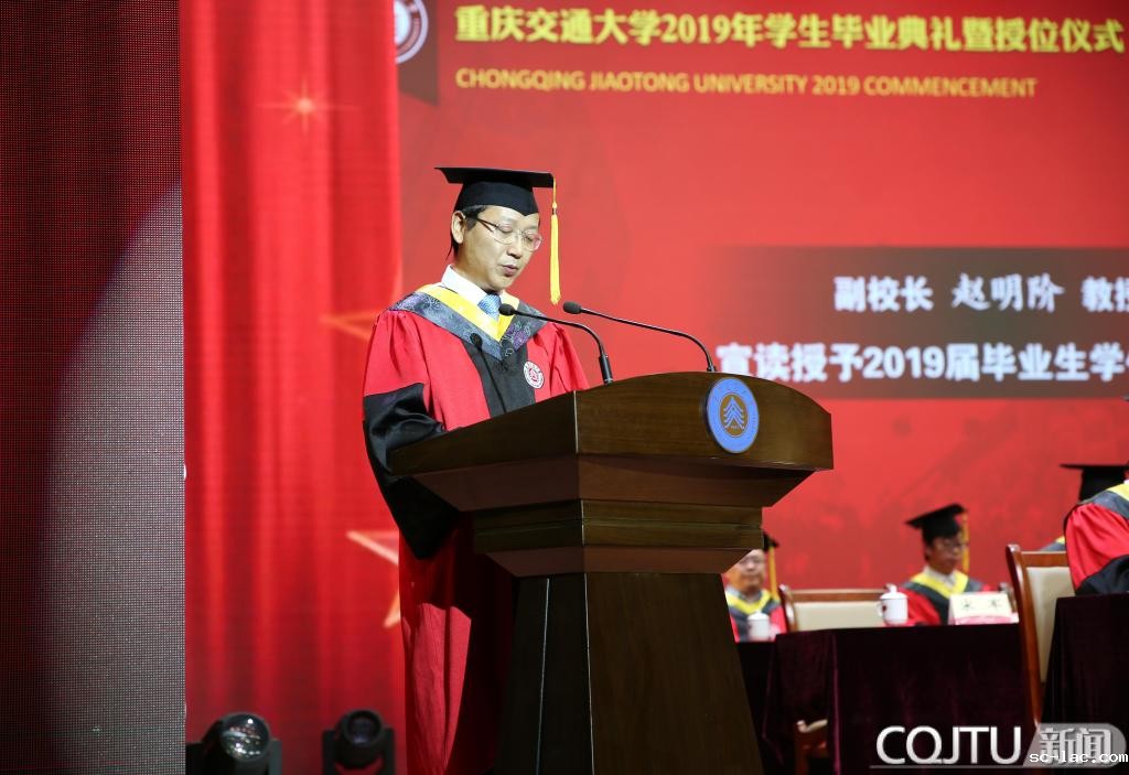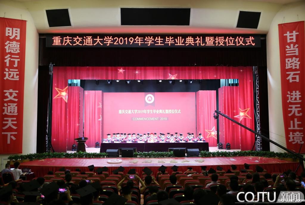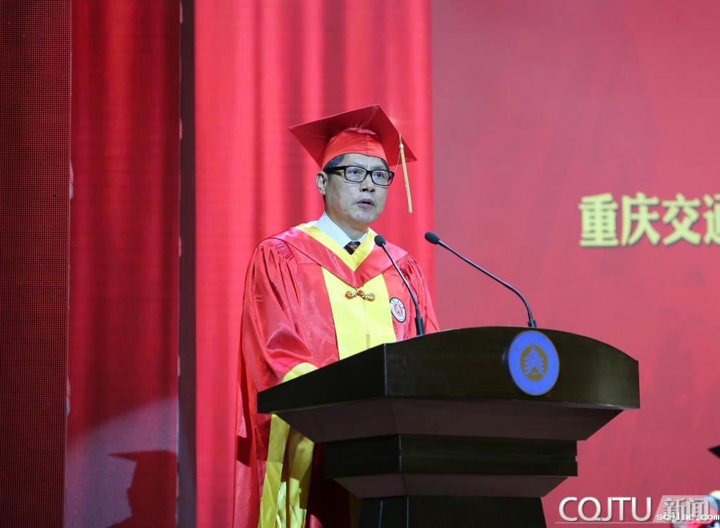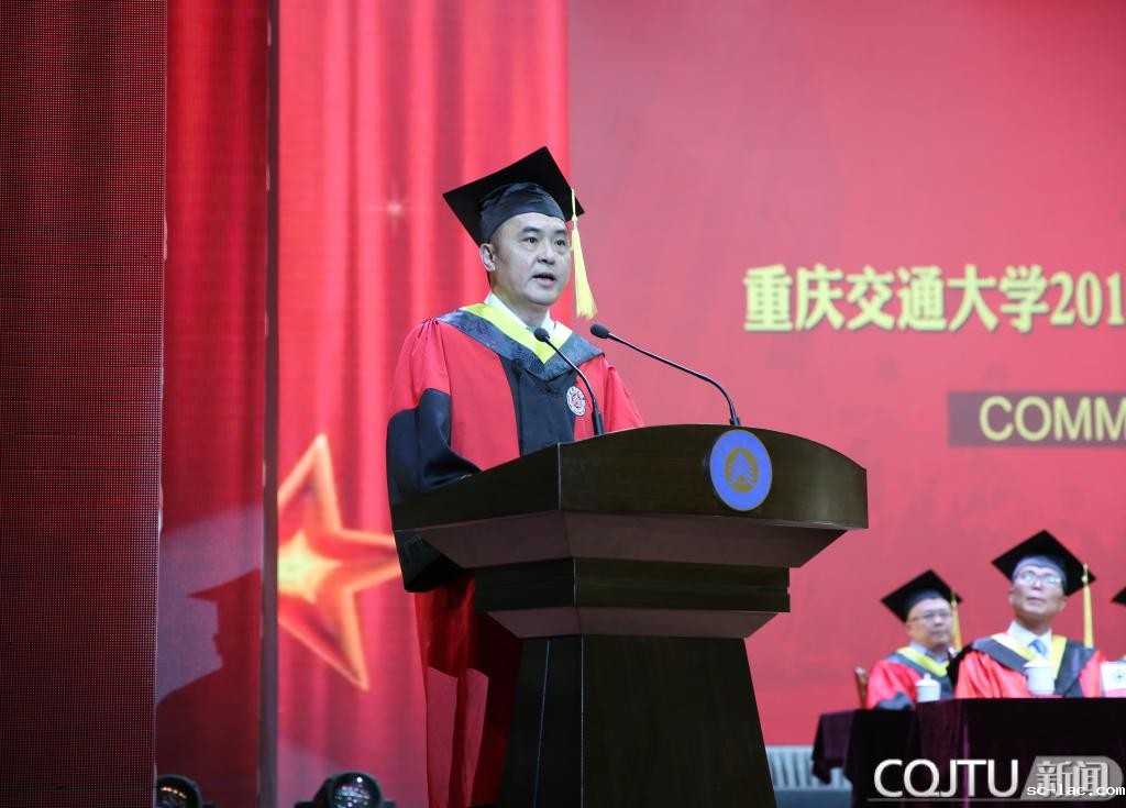 唐伯明校长讲到,四年来,你们在这所创造传承“两路”精神中孕育发展起来的光荣学府挥洒了无数激情与汗水:晨曦的李子湖畔、深夜的考研教室和寂静的图书馆,你们用勤奋与执着谱写未来之路;二分之一毕业季晚会、环湖长跑、科技文化节和创新创业大赛上,你们用个性与活力彰显新时代青年风采。在这里,你们彻夜奋战,荣获世界大学生桥梁设计大赛一等奖;你们傲视群雄,包揽重庆市所有足球赛的冠军;你们甘当路石,在“无止桥”公益项目中挥汗如雨,用“小桥”抒写人间“大爱”,以责任和担当践行家国情怀!