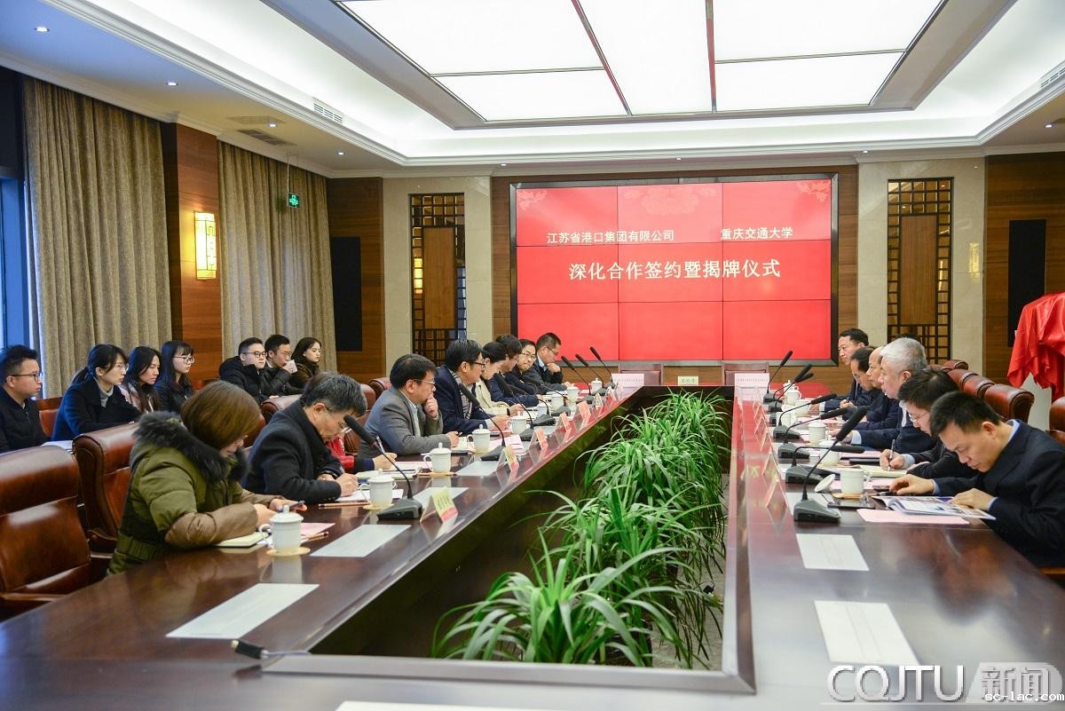 唐伯明校长向来宾一行表示热烈欢迎,深情回顾了学校与江苏港口集团过去的友好合作,着重介绍了重庆的经济发展态势和交通建设情况以及学校今年的建设成果。唐伯明表示,江苏是改革开放的前沿阵地,交通事业走在中国的前列,江苏港口集团拥有沿江沿海港口、岸线及相关资源一体化整合平台的集聚优势,期望校企双方在“智慧化、绿色化”港口建设与营运方面开展广泛深入合作,从而带动学校港航物流研究、服务产品开发、发展咨询、人才培养、科学研究与学科建设发展升级。