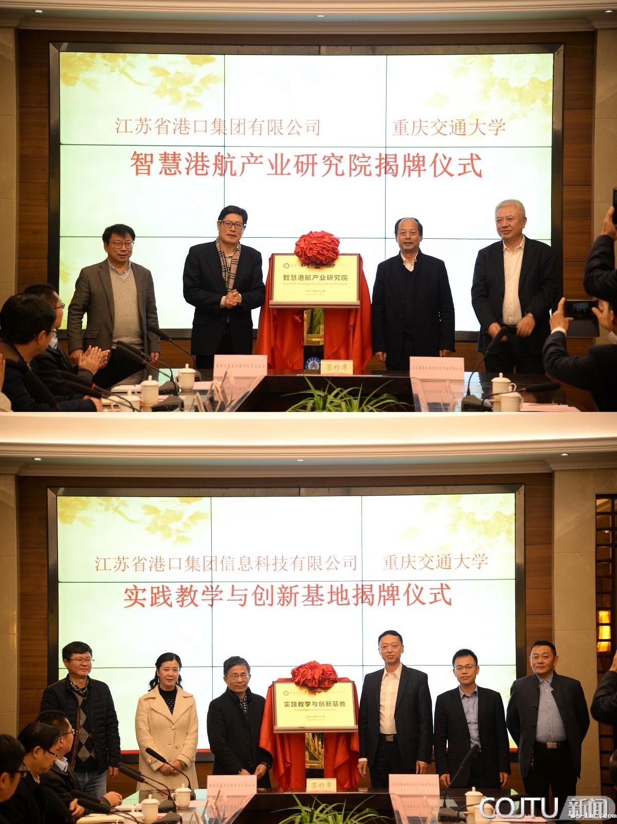 为构建新型智库,江苏省港口集团与我校共建“智慧港航产业研究院”,共同开展智慧港航产业技术研发及人才培养。江苏省港口集团有限公司董事长王永安、副总经理唐洪生与学校校长唐伯明、副校长易志坚共同为“智慧港航产业研究院”揭牌。