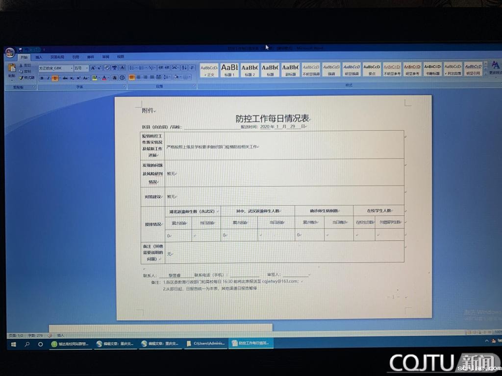 1月26日起,学校各级领导班子及防控相关部门负责人、关键岗位负责人在岗值守,各学院、部门负责人和值班人员在岗在线值守,认真组织填写《近期到武汉或武汉返渝人员接触师生摸排详细信息》《留校学生摸排信息》《近期到湖北(武汉除外)或与湖北(武汉除外)来渝人员接触师生情况摸排》等表格;各学院、部门认真填写《防控工作每日情况表》(包含在编在岗及聘用人员),严格做到每日一报。期间,学校发布《老伟德网上娱乐关于加强校园安全管理的通告》《新型冠状病毒感染的肺炎健康科普小知识》《学校召开新型冠状病毒感染的肺炎疫情防控工作会》等文章,及时通过微博、微信公众号、工作群、家长群、学生群等网络渠道,用师生听得到、听得懂、听得进的方式强化宣传教育引导,严格舆情监控,做到不懈怠、不恐慌,不信谣、不传谣。