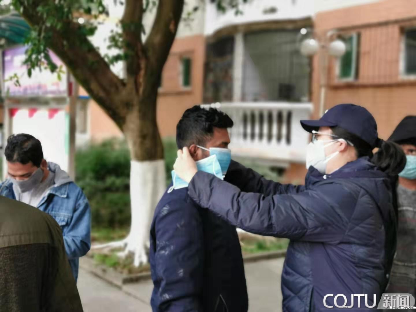 国际学院留学生管理科郑媛媛老师30日上午又早早地来到留学生公寓,继续为在校留学生同学们登记发放口罩。据郑媛媛介绍,多日以来,她同国际处/国际学院众多值守教师一起,每日统计报送学院学生出入校等情况,及时在线上线下宣传疫情防控各类知识,并将各类文件翻译成英文,用双语将疫情防控注意事项更好、更快地传达给留学生同学。“此外,我们还紧急购买、申领疫情防控物资发放给留学生,不断科普防控相关知识,并向同学们演示口罩如何戴,洗手步骤、如何进行宿舍消毒等。相信在学校和各学院的共同努力下,我们一定能打好、打赢这场疫情防控战役!”