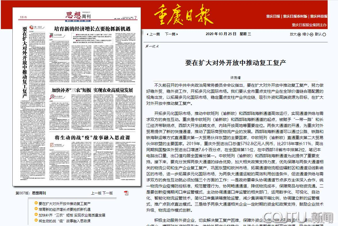 重庆日报:https://www.cqrb.cn/html/cqrb/2020-03/25/007/content_256800.htm
