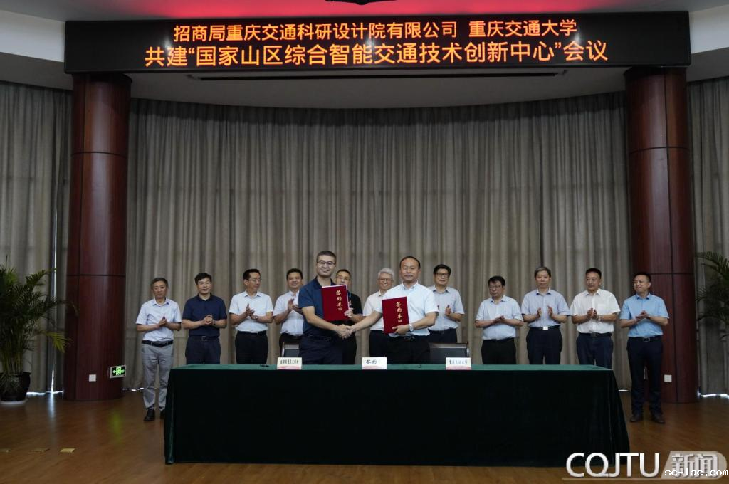 7月16日下午,招商局重庆交通科研设计院有限公司党委书记、董事长王福敏,副总经理、总工程师彭金涛,财务总监、总法律顾问周祖梁,纪委书记周仁刚等一行赴我校双福校区,就院校共建“国家山区综合智能交通技术创新中心”洽谈合作交流,签订合作协议。校长、党委副书记唐伯明,副校长易志坚、王平义、周建庭,校党委常委、宣传部长白凯出席签订仪式。