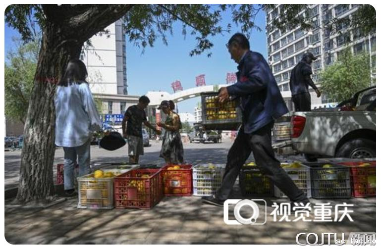 ▲2020年8月8日,内蒙古乌海市,重庆交大的科研队员们在街头尝试销售沙漠种植出来的甜瓜“华莱士”。 记者 万难 龙帆 摄