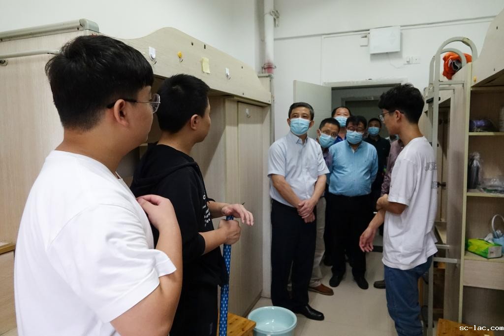 在德园八舍,李天安、易志坚、黄承锋一行来到2楼学生宿舍,与来自五湖四海的大一新生们亲切交流,希望他们及报到新生们尽快适应大学环境、积极融入大学生活、早日养成独立自主的学习生活习惯,不断勤奋进取、增长才干,度过充实而有意义的大学时光。