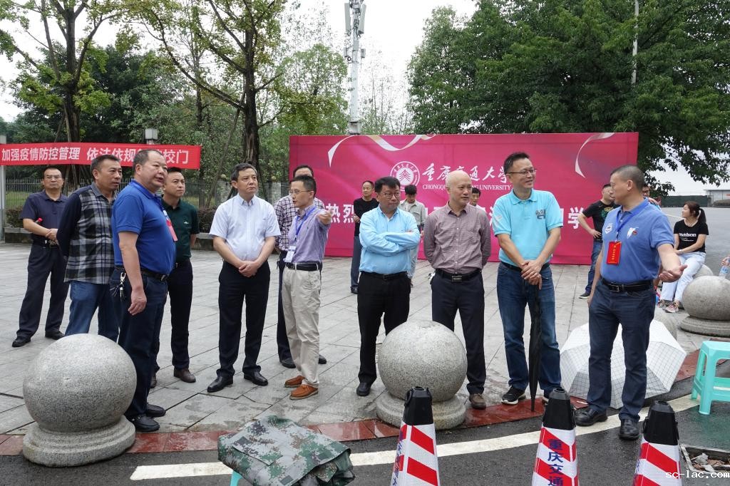 在双福校区南大门,李天安、易志坚、黄承锋一行详细了解迎新大巴(往返双福校区—重庆北站北广场、重庆西站)、新生入校、车辆即停即走、志愿者服务等运行管理情况。疫情防控进入常态化,为全力保障迎新工作平稳有序,报到新生可在南大门与家长自由合影留念,随后在学长学姐们的引导下独自踏入校园、开启崭新的大学生活。双福校区南大门前,徐徐小雨丝毫未能阻止新生及其家长合影留念的热情。