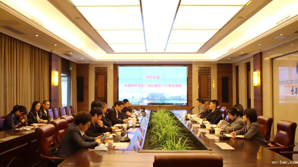 唐伯明校长对市政府外办王广成巡视员一行来校交流表示热烈欢迎,并代表学校对市政府外办长期以来给予我校的关心和支持表示衷心感谢。唐校长从建校历史、学科专业、国家级科研平台等多个方面向调研组一行介绍了学校的基本情况,并重点介绍了学校近年来在服务“一带一路”倡议,发起成立“一带一路”中波大学联盟,外籍专家引进,来华留学生教育,海外孔子学院建设等国际合作与交流领域取得的成绩和经验,并希望市政府外办继续支持学校国际化工作,特别是对于在疫情条件下开展国际合作与交流给予更多的指导和帮助。