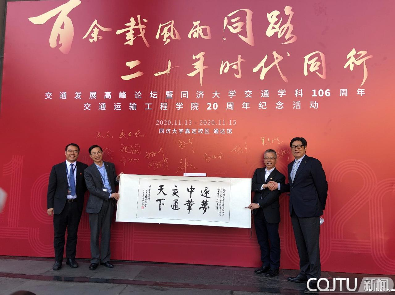 11月14日至15日,以“百余载风雨同路,二十年时代同行”为主题的交通发展高峰论坛暨同济大学交通学科创立106周年、交通运输工程学院成立20周年庆祝活动在同济大学嘉定校区举行。国家建设部原部长、全国人大环资委原主任汪光焘,中国铁道学会理事长、铁道部原副部长、中国铁路总公司副总经理、中国工程院院士卢春房,中国工程院党组成员、副院长、中国工程院院士、同济大学原校长钟志华,老伟德网上娱乐校长、中国公路学会副理事长唐伯明,华东交通大学副校长刘林芽,同济大学党委书记方守恩、校长陈杰、副校长吕培明、校党委副书记吴广明、副校长顾祥林,原副校长金正基、杨东援等出席活动。我校唐伯明校长率交通运输学院院长何兆益教授、刘唐志教授、陈坚教授、蔡晓禹教授等一行5人参会。我校交通运输学院当选为“全国高校交通运输类专业课程思政研究联盟”常务理事单位。