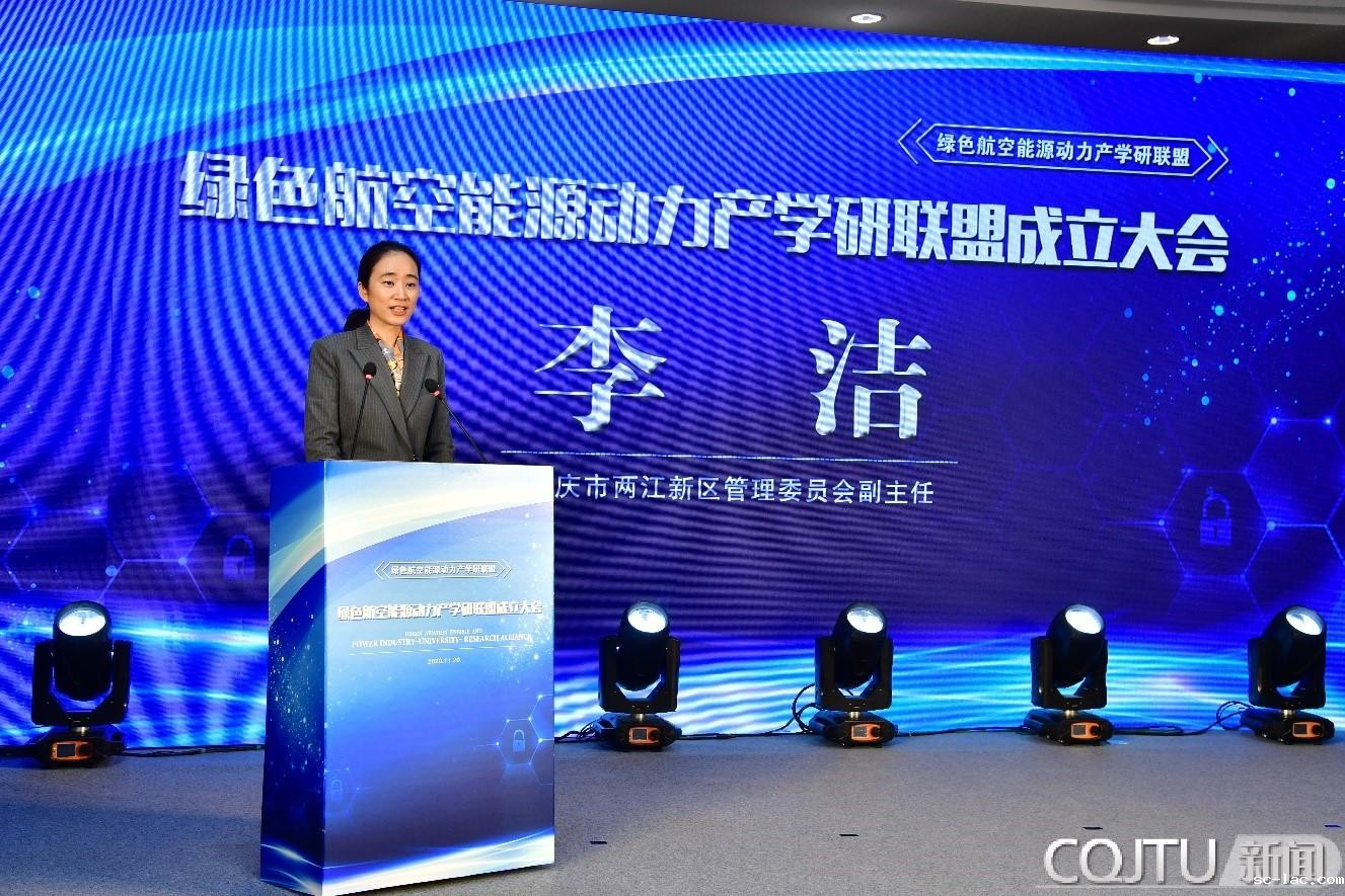 两江新区管委会副主任李洁为大会成立致贺辞,对联盟的成立给予高度认可,指出“绿色航空能源动力产学研联盟”是在两江新区建设发展五大功能定位的总体要求下,两江新区打造协同创新区的一次重要实践,希望通过联盟的设立,打通产学研交流合作渠道,共同促进绿色航空能源动力的发展进步,为重庆建设有全国影响力的科技创新中心提供重要科技支撑。
