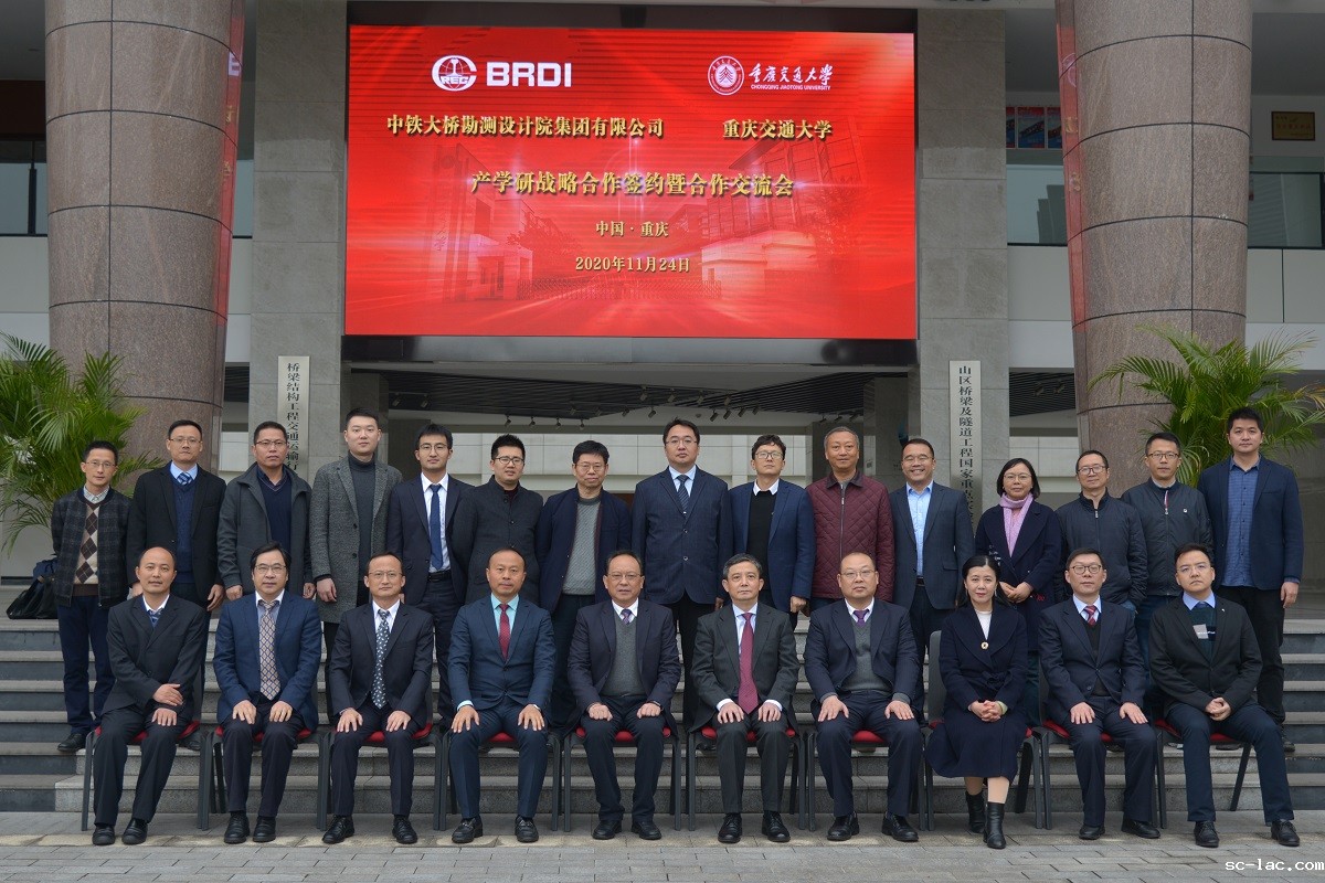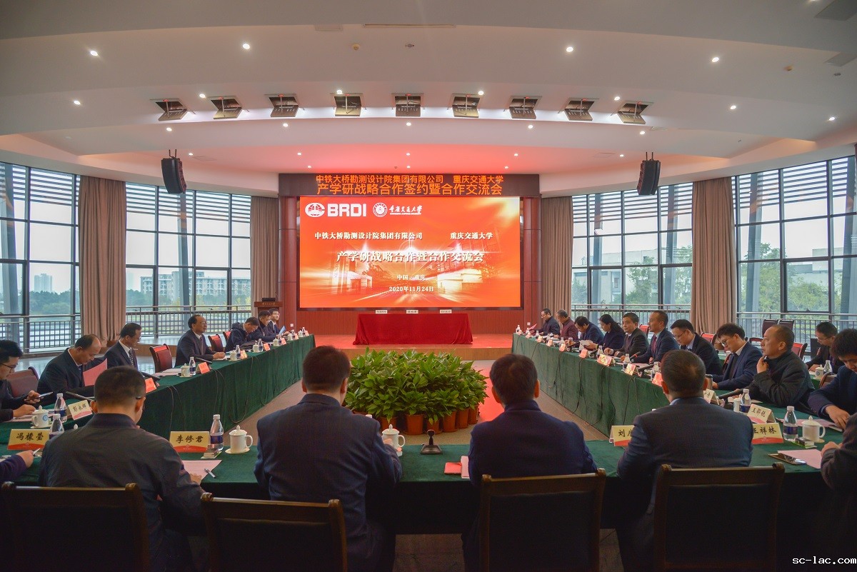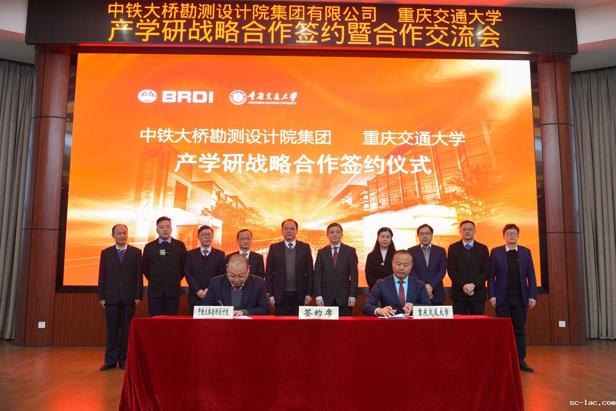 站在新起点,共抓新机遇。11月24日,中铁大桥勘测设计院集团有限公司总经理田道明、副总经理黄燕庆、战略规划部部长欧建平、科技部部长梅大鹏、武汉院副院长张峰、重庆分公司总经理蔡敦松一行来校对接产学研合作,并与学校签署产学研战略合作协议。校企战略合作签约暨合作交流会在双福校区致远楼报告厅举行,校党委书记李天安出席活动,副校长周建庭主持会议。