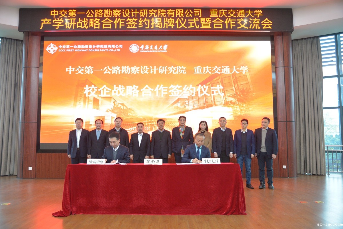 面向新时代,共抓新机遇。12月15日,中交第一公路勘察设计研究院有限公司总经理、全国工程勘察设计大师汪双杰,副总经理兼总工程师李涛,纪委副书记、党委工作部部长李保国,战略发展部主任崔宏,中交瑞通路桥养护科技有限公司党委书记、董事长孙洪利,中交一公院工程技术研究院党委书记、院长富志鹏,第四交通设计院党委书记、院长罗波,西安中交土木科技有限公司党委书记、董事长潘长平,西安中交公路岩土工程有限责任公司总经理罗涛,西安方舟工程咨询有限公司总经理夏宇,中交一公院桥梁分院院长侯旭,重庆分院院长刘建武一行来校对接产学研合作,并与学校签署产学研战略合作协议,揭牌产学研合作基地和研究生教育创新基地。校企战略合作签约揭牌仪式暨合作交流会在双福校区致远楼报告厅举行,校长唐伯明出席活动,副校长周建庭主持会议。