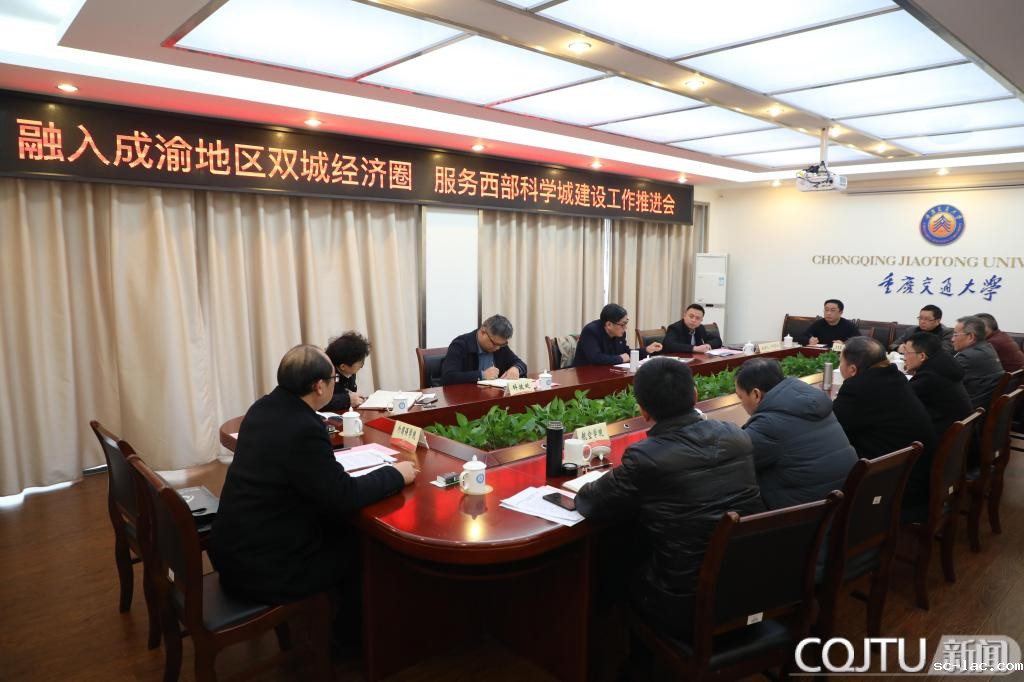 2021年1月4日,成渝地区双城经济圈建设一周年之际,学校在双福校区学生活动中心414会议室召开了“融入成渝地区双城经济圈 服务西部科学城建设”工作推进会,研讨学校如何发力唱好“双城记”,建好“经济圈”。校长唐伯明,校党政办、科技处、双福校区管委会、航空学院、数统学院、外国语学院、马克思主义学院主要负责人参会。