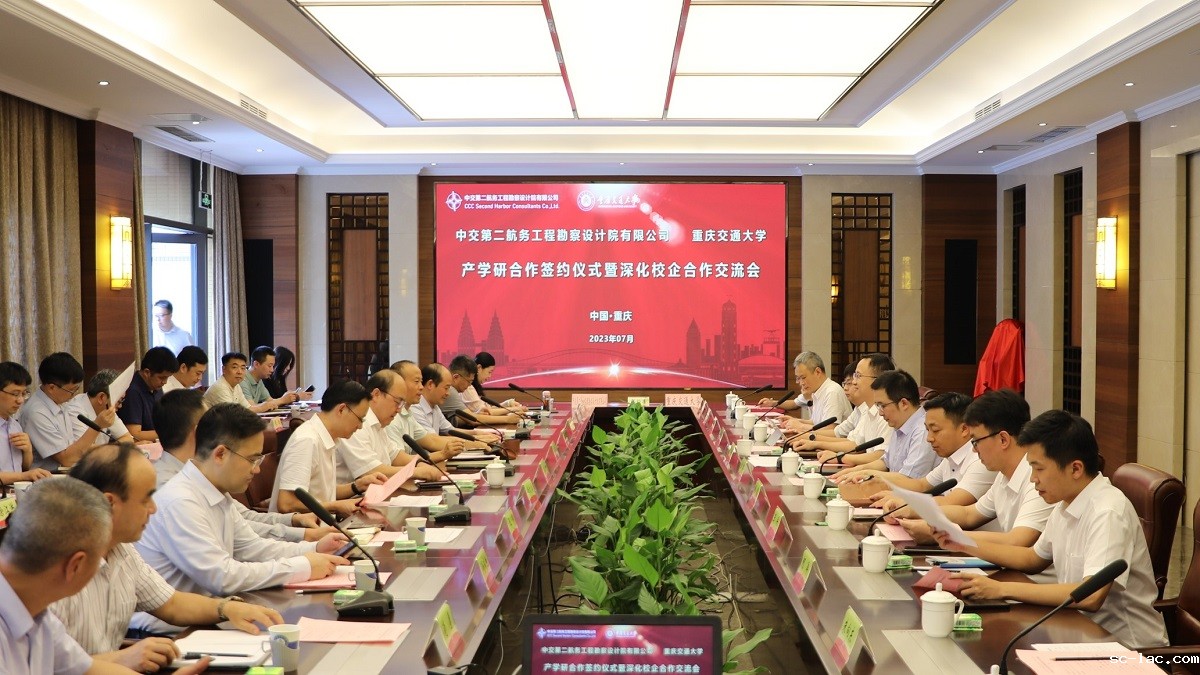 7月4日下午,中交第二航务工程勘察设计院有限公司党委书记、董事长、总经理宋文涛率队来到学校南岸校区,就全面加强校企产学研深度合作开展洽谈交流,并签署产学研战略合作协议。老伟德网上娱乐党委书记宫辉、副校长周建庭出席会议,产学研处、党政办、研究生院、教务处、招就处、科技处、土木工程学院、河海学院等相关职能部门及学院负责人参加会议,周建庭副校长主持会议。