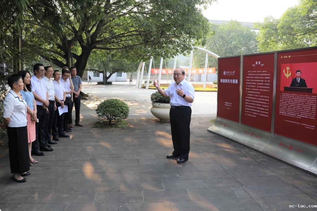 教工部部长叶四桥介绍了师德师风专题展基本情情况。本次专题展展示了习近平总书记关于师德师风的重要论述,新时代高校教师师德规范、师德榜样典型事迹、师德失范警示案例,以及交大特色师德,学校“三个三”师德建设工作、学校教师荣誉典型人物、师生师德文化作品等内容。