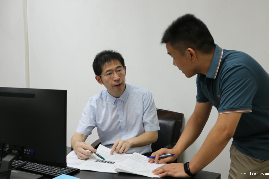 吴礼舟和课题组博士后龙坤交流。郭晓彤摄