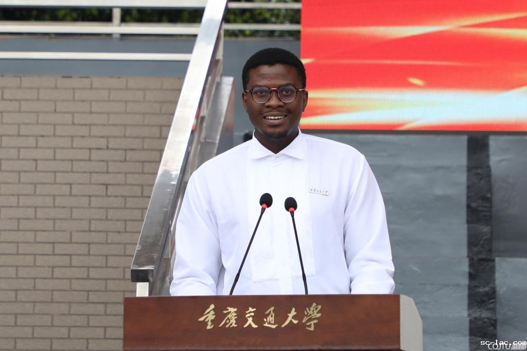新生代表,国际教育学院交通运输工程专业硕士留学生拉贾布·沙科·诺比:此刻,我无比期待这个新学期、新起点。相信在场的每一位新同学都将在交大与良师益友结缘,用努力的拼搏描绘未来,用丰富的学识充实自己,用开放的胸襟结交友谊,从交大走向世界,讲好交大故事,传播中国声音!