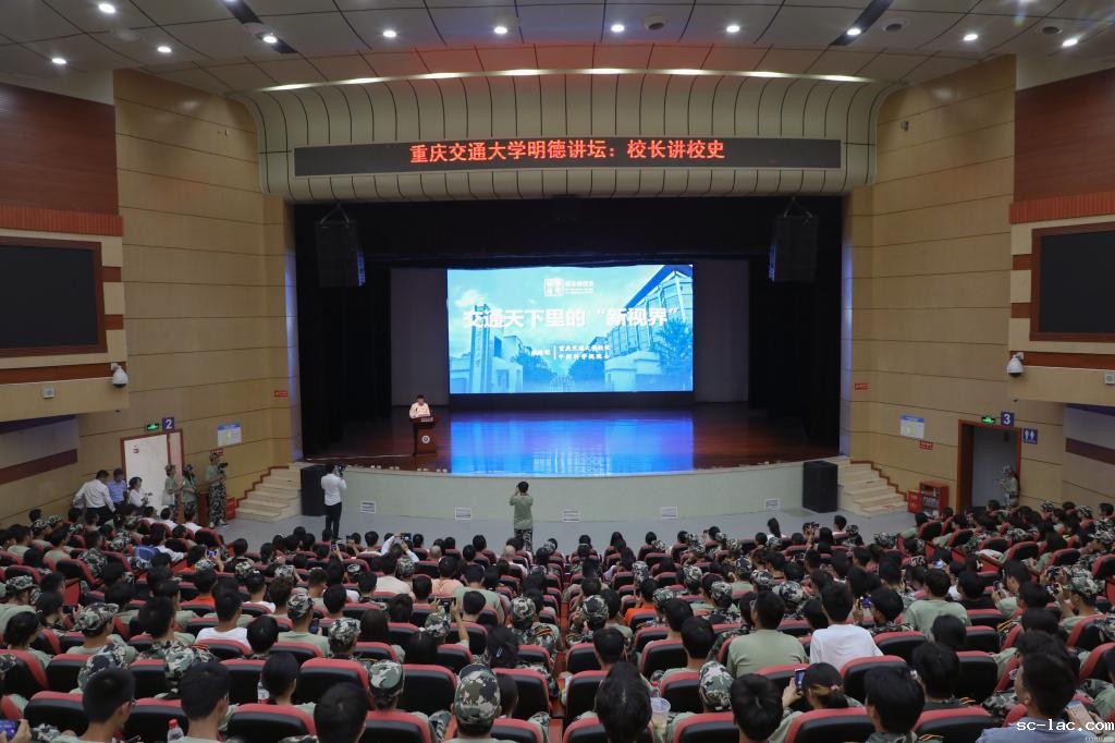 同学们聚精会神地在校长的娓娓道来中感悟“明德行远,交通天下”的校训精神,感受学校的光荣历史,领略重庆交大精神、交大标识与交大担当的当下力量。