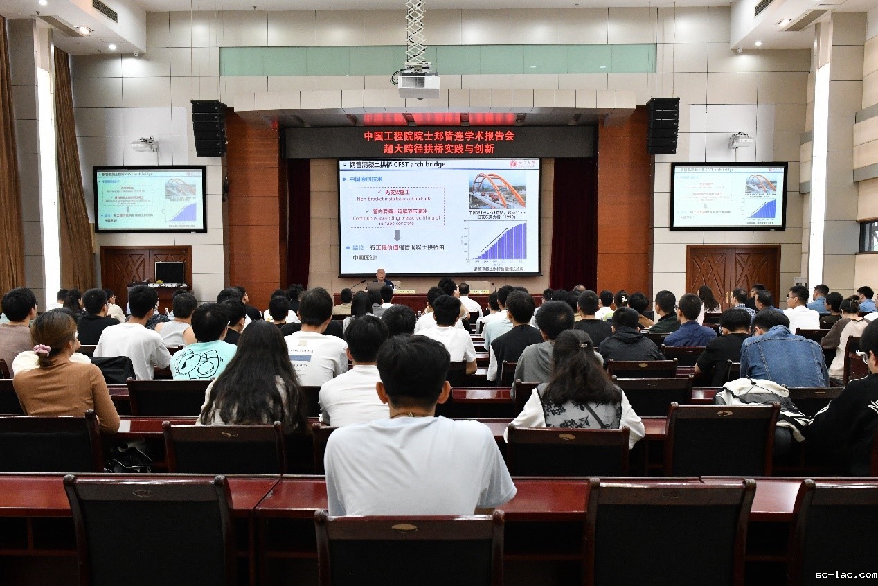 2023年9月23日上午,我校65届校友、中国工程院院士郑皆连来到学校,为莘莘学子们作了题为“超大跨拱桥建造实践及创新”的学术报告。郑院士作为桥梁工程领域的权威专家,将他的学术研究和工程经验分享给学生们,同时也唤起了大家对工程科学研究的热爱和探索欲望。副校长周建庭主持了学术报告。