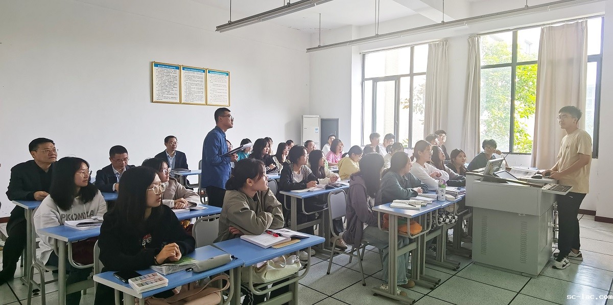 会前,赖远明深入教室听取了外国语学院黄勇老师的《综合英语(I)》课程,调研学院语音实验室和智慧教室建设。