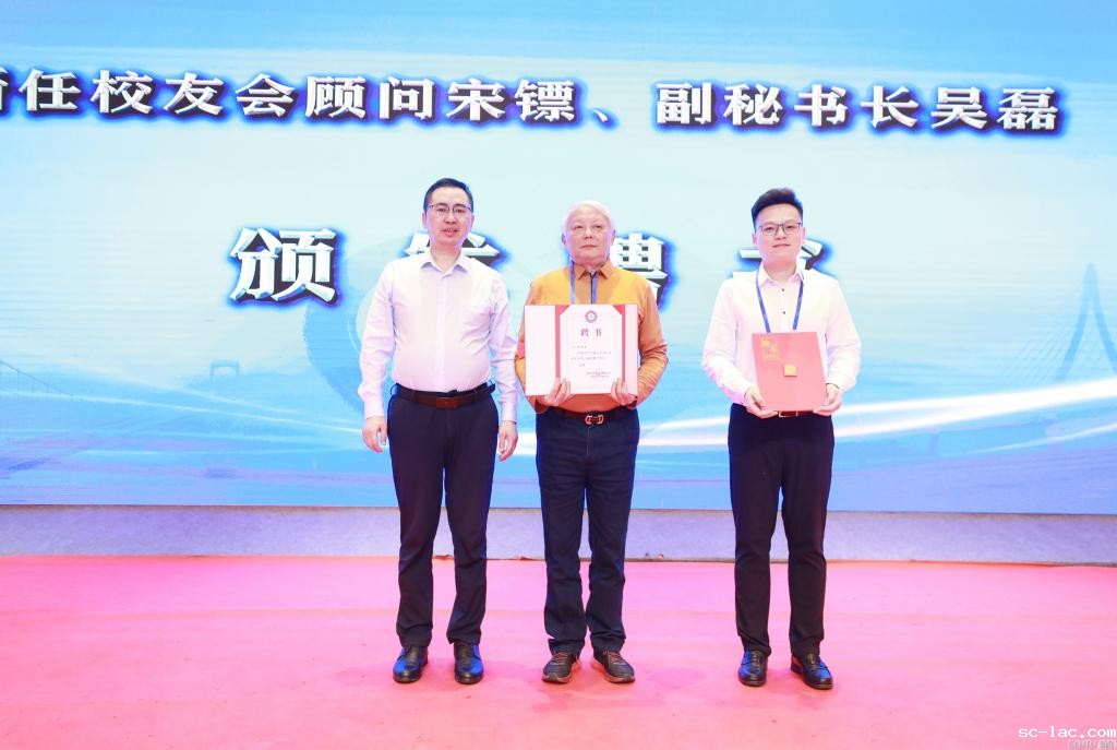 校友会副会长任海涛为新任校友会顾问宋镖、副秘书长吴磊颁发聘书