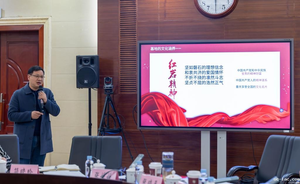 会上,重庆红岩革命历史文化中心产业发展处处长周万炯从 “文化涵养、平台依托、发展内核、开放格局”四个方面详细对红岩全国“大思政课”实践教学基地和红岩全国中小学生研学实践教育基地做了概况介绍。