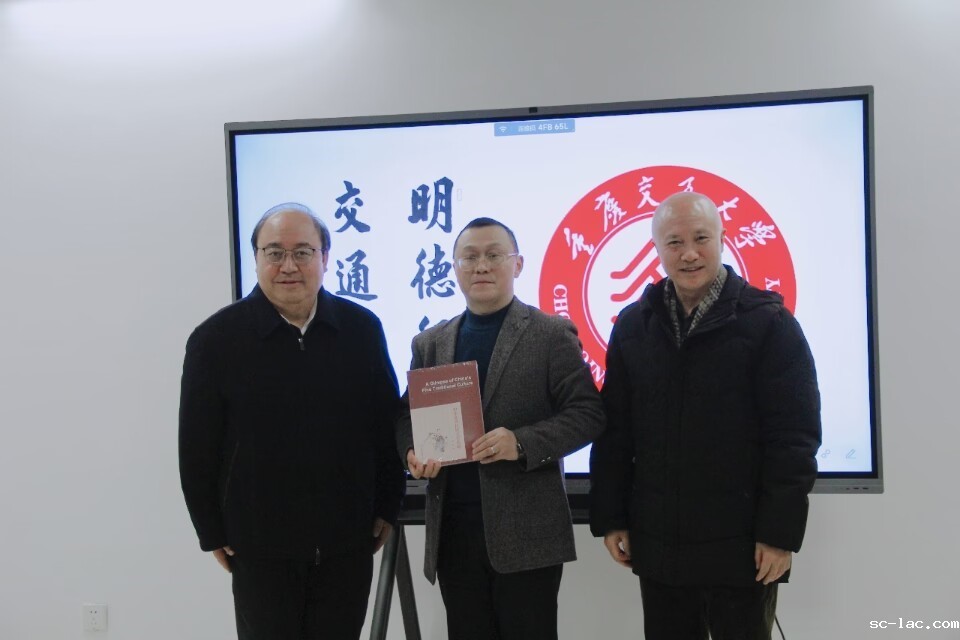会前,宫辉、黄承锋一行实地察看了外国语学院语言实验中心。会议结束时,大学外语教研室主任李勇将其编写出版的教材《A Glimpse of China’s Fine Traditional Culture》赠送给两位校领导并合影留念。