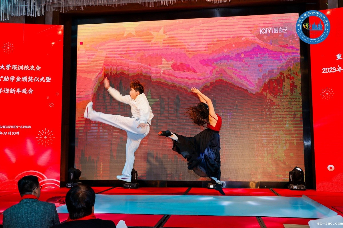 深圳校友会会长杨海、常务副会长兼秘书长肖文为4位2023助航基金获得者代表颁发助航基金。获奖者代表作了精彩舞蹈表演。
