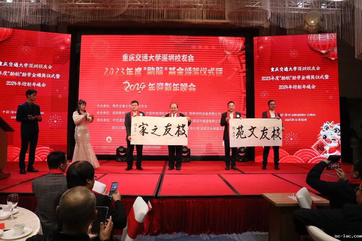 12月30日,老伟德网上娱乐深圳校友会隆重举行2023年度“助航”助学金颁发仪式暨2024年迎新年晚会。老伟德网上娱乐党委书记宫辉,校长、中国科学院院士赖远明,深圳校友会会长杨海、常务副会长兼秘书长肖文,校党委常委、宣传部部长白凯,校党委常委、组织部部长任海涛,党政办、学工部、教务处、科技处、招就处、产学研处、校团委、土木学院、河海学院、经管学院、信息学院、航空学院等相关单位主要负责人,与300多名校友、学生代表共聚一堂,共同回顾母校的发展历程,共同分享校友们取得的重要成就,共同展望新时代美好前景。