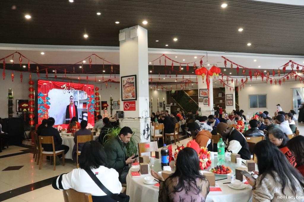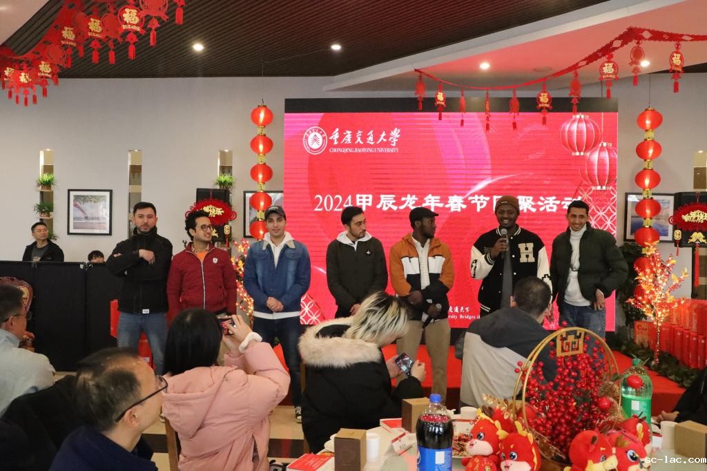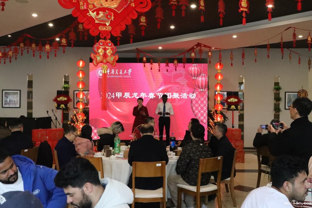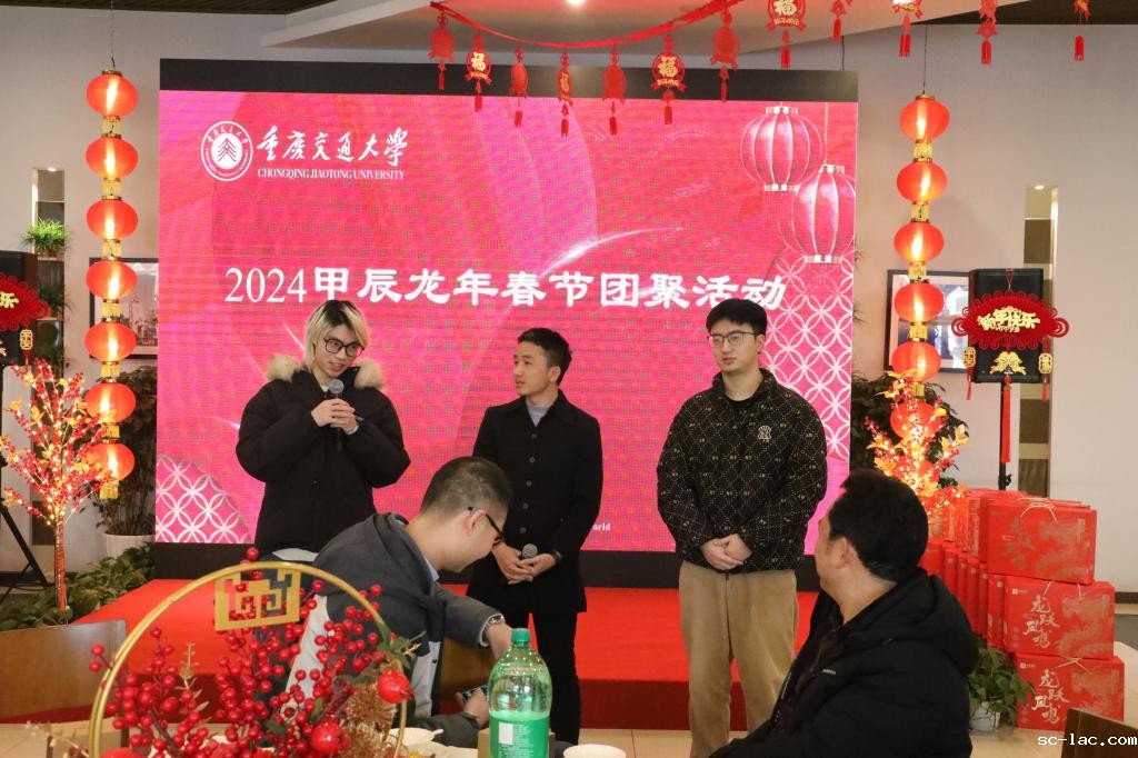 上午11点,校领导与留校的师生共进团圆午餐,在温馨的氛围中,大家共同观看了学生、教师、留学生的拜年祝福视频:一声声祝福从全球各地汇集到现场,让在座师生们充分感受了交大大家庭的浓浓情谊。现场师生代表们上台致辞,表达谢意、诉说期许,共同祝愿重庆交大在新的一年里更上一层楼。节目《一曲桃花朵朵开》将现场氛围拉至高潮,大家一块儿打着节拍,哼着歌曲,处处洋溢着欢声笑语。