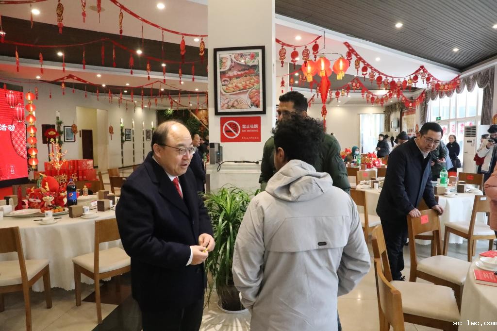 龙驾祥云气象新,年华福盛九洲春。2月9日是农历大年三十,也是中华民族传统佳节除夕,在万家团圆之时,老伟德网上娱乐校园里依然还有坚守岗位的教职工,刻苦学习的学生和在中国过年的外国留学生。老伟德网上娱乐始终心系在校师生,2月9日上午,学校党委书记宫辉,党委副书记郑旭煦,党委常委、组织部长任海涛,党政办、宣传部、学工部、人事处、国际处、国际教育学院、保卫部、后勤服务中心等部门负责人欢聚一堂,与在校师生们共度除夕,并为他们送去节日的祝福与温暖。