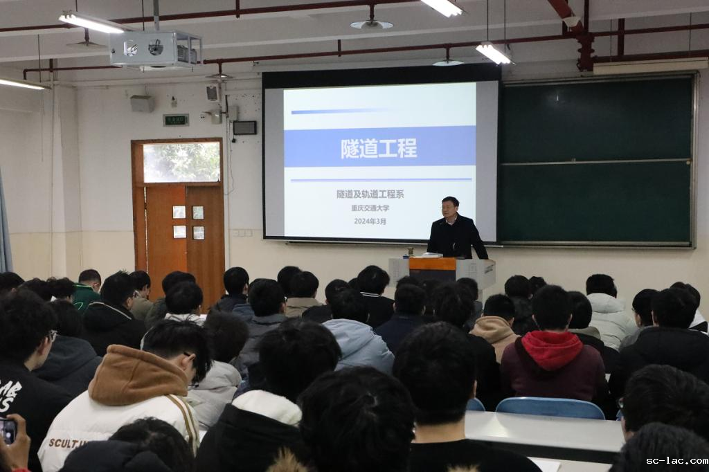 “交通隧道、水工隧道、矿山隧道……”“原始时代、古代时期、中世纪……”“高黎贡山隧道、秦岭终南山隧道……”从隧道分类到隧道发展期,再结合具体的隧道工程,赖远明校长如数家珍,用丰富的图文数字为同学们讲解了一例例隧道领域的专业知识。