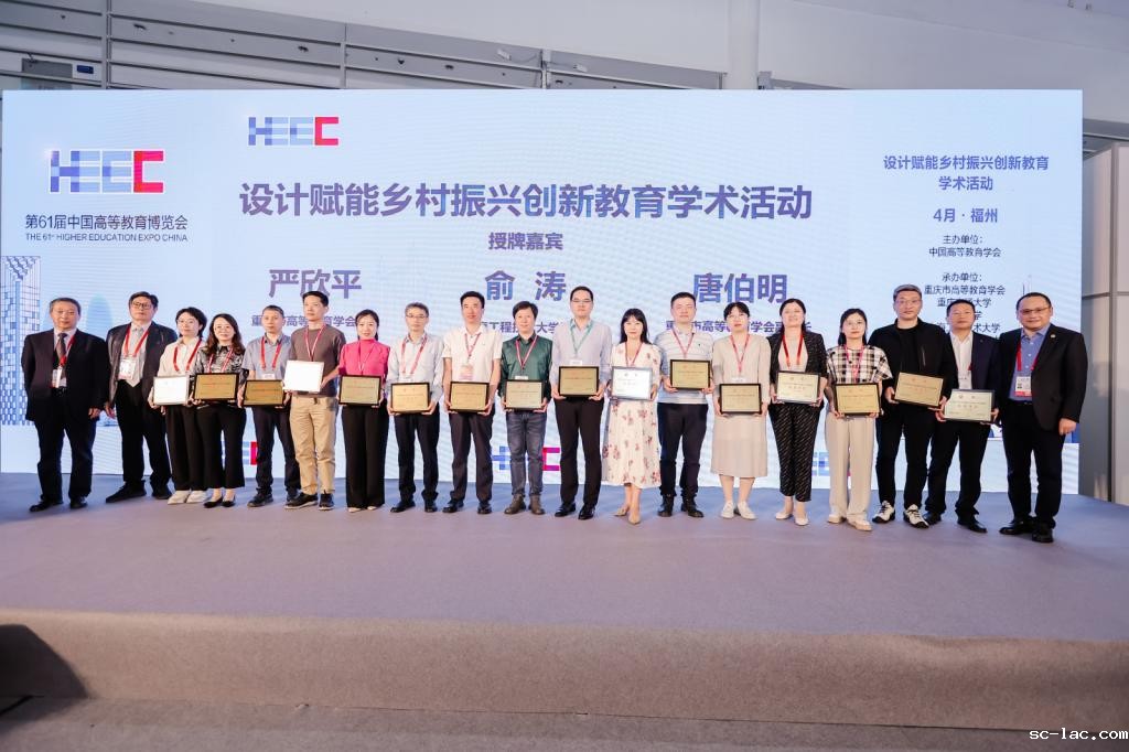 会议总结了设计赋能乡村振兴工作的先进经验和典型做法,表彰了2023年设计赋能乡村振兴先进单位。重庆市高等教育学会会长严欣平,上海工程技术大学校长俞涛,重庆市高等教育学会副会长唐伯明共同为受到表彰的单位授牌。