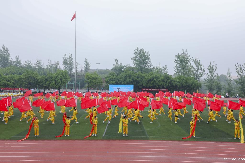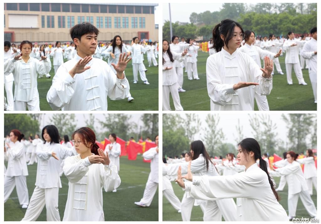 445名交大学子身着金黄色武术服,他们步伐一致地迎面交叉,以磅礴的气势飞奔入场,为师生们献上了一场震撼人心的武术表演《旗动龙随:太极画卷》。他们挥动旗帜,一招一式都充满力量与美感,尽显青春活力。