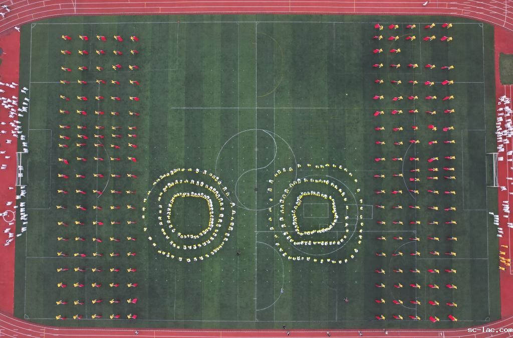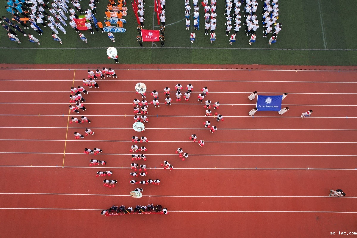 信息学院同学们以棱角分明的队形和整齐划一的动作,为师生们献上了“旗语操”表演。