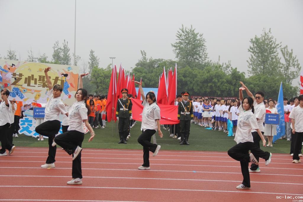智慧城市学院同学们伴随着青春主题歌曲“我的未来式”进行了舞蹈表演,他们灿烂的笑容展现出了热情活泼的精神面貌。