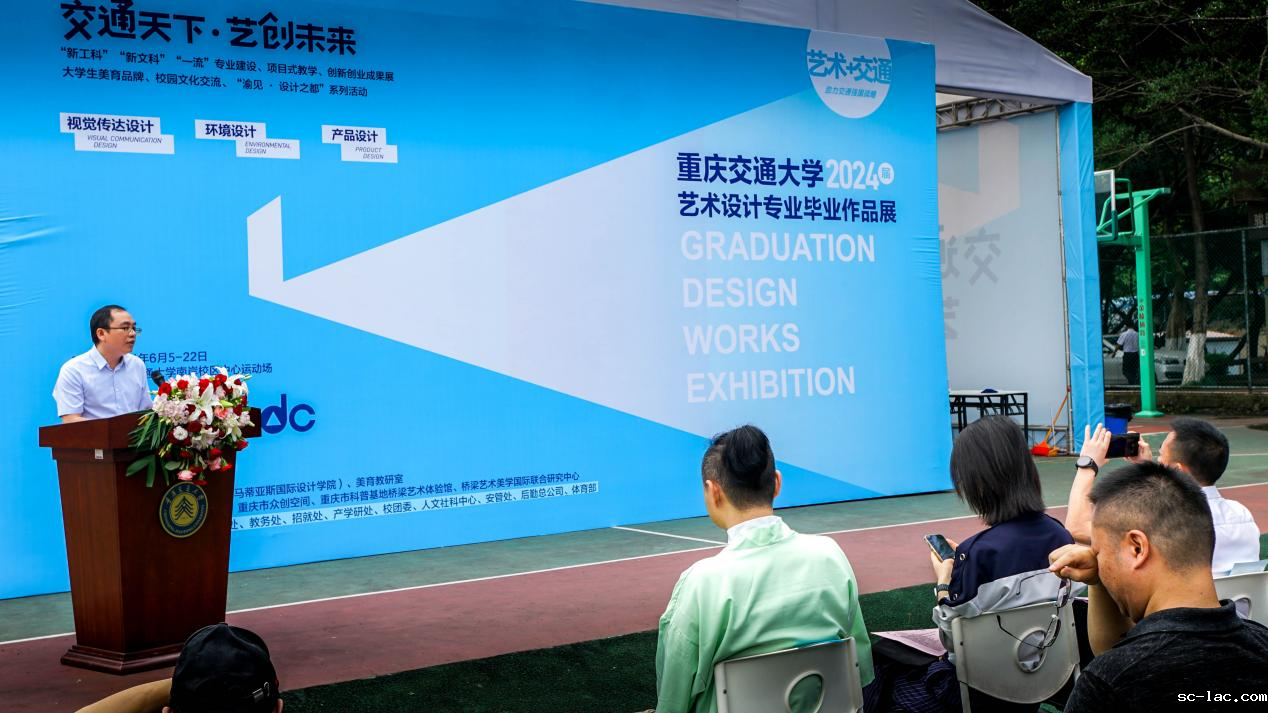 叶勇在致辞中表示,艺术设计学院同学们以独特的视角、敏锐的感知和扎实的专业技能,致力于探索艺术设计同文化、城市、乡村、环境、社会和出行之间的深厚关联,创作体现出浓郁的家国情怀和创新精神,展示出“艺术+交通”的浓郁特色。叶勇鼓励同学们传承弘扬“两路”精神,向没有路的方向前行,以人人有责、人人奋斗、人人成长、人人出彩的理念启程新征程,为人生新的目标注入更加充沛的活力与动能。