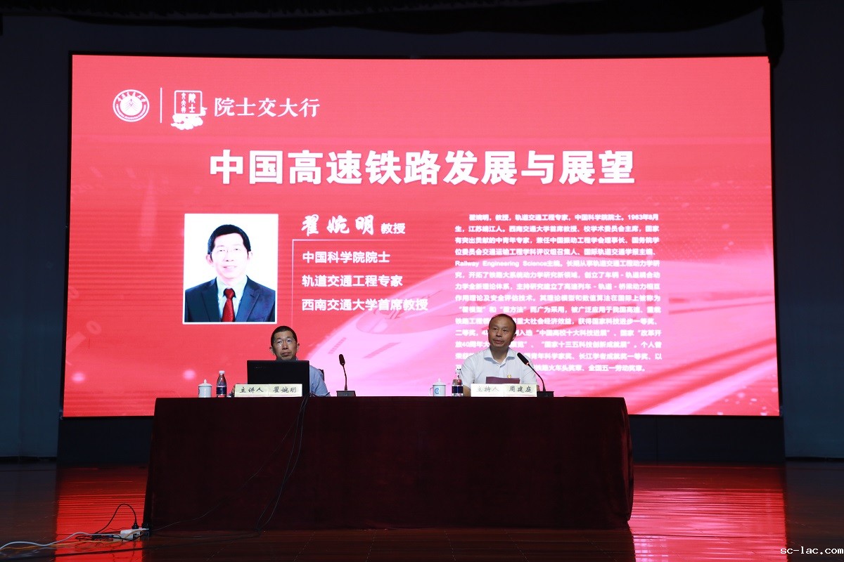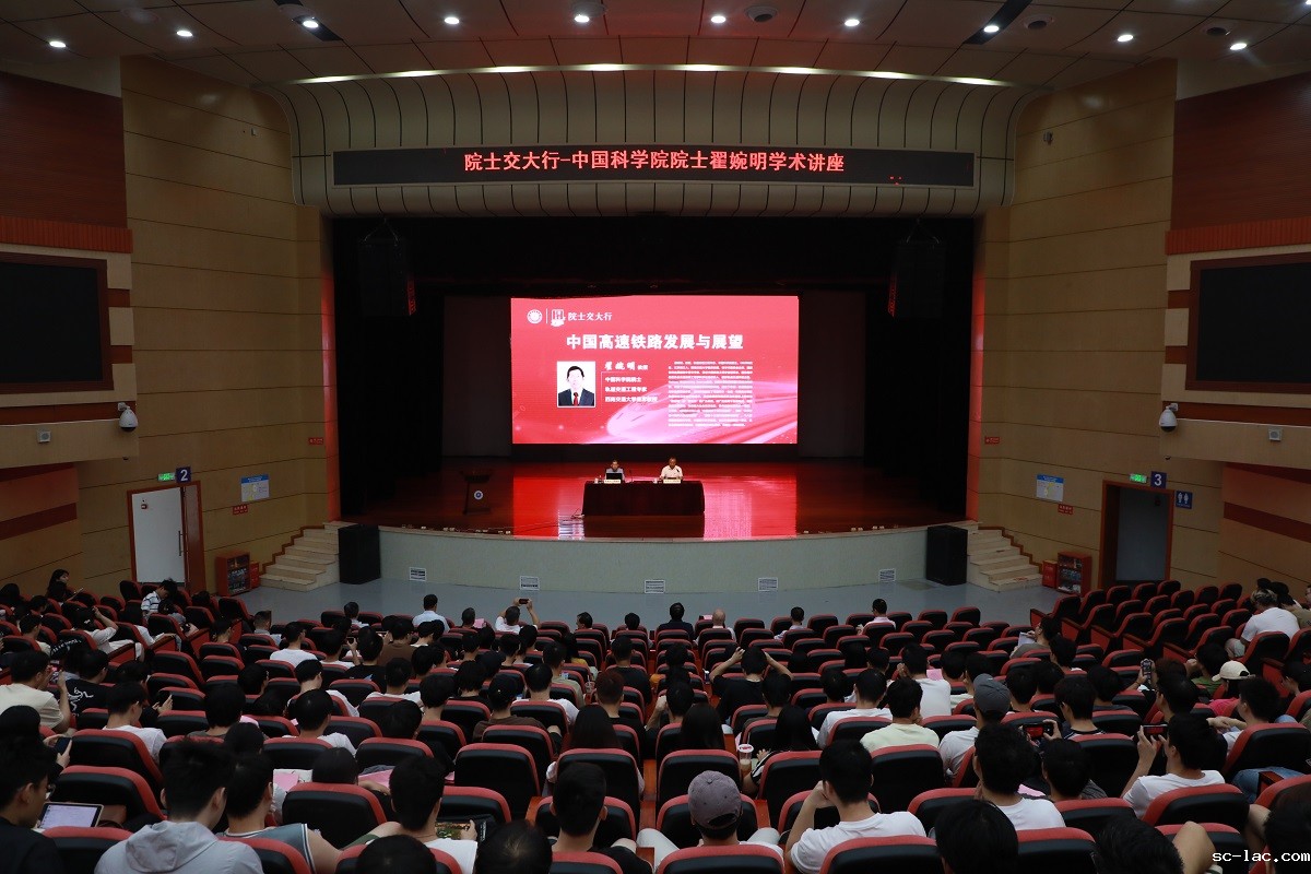 在科学城校区学生活动中心报告厅,翟婉明院士为校区师生作了“中国高速铁路发展及其面临的科技挑战”的专题报告。党委常委、副校长周建庭主持报告会,副校长黄承锋、校内外相关专家教授及学生聆听了该报告。