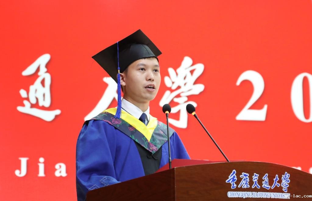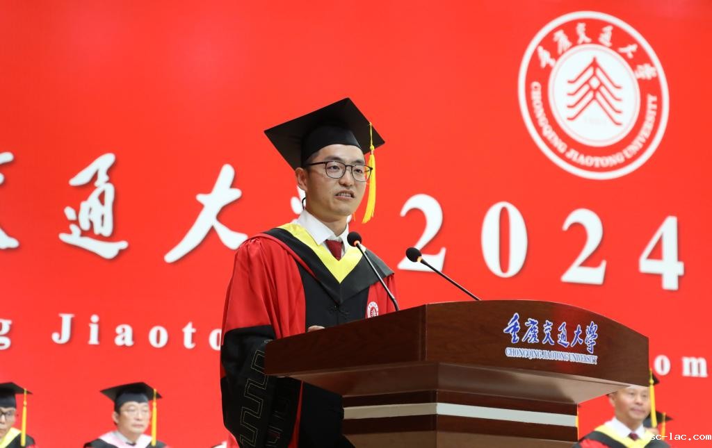 “毕业或许就像一把钥匙,为我们开启新的人生大门,代表着告别校园生活的熟悉与安逸,迎接社会的挑战与机遇……”教师代表、教育部青年长江学者、90后教授、山区桥隧国家重点实验室杨俊寄语毕业生:成功没有标准答案,每个人都有属于自己的精彩篇章;无论是选择投身工作的熔炉,还是选择继续深造,都要保持对知识的渴望和追求;只要坚持不懈,就能不断超越自我,书写属于自己的辉煌。“毕业后别忘了传承弘扬‘两路’精神和‘明德行远,交通天下’的校训文化,别忘了老师们指点迷津、倾囊相授的模样,无论你的人生际遇是什么,母校永远是你的港湾!无论你们走得多远,母校都会一直牵挂你们!”