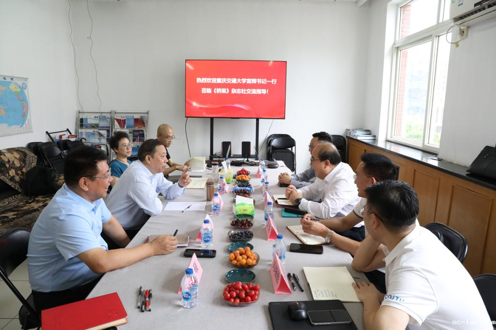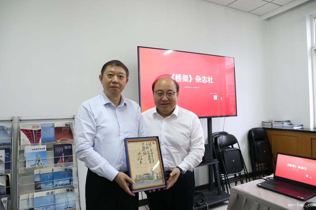 庞松高度赞同宫辉关于学科专业建设的深入思考,他强调指出,大学发展应当聚焦特色专业,以信息化和新材料作为学科专业发展的重要支撑,重视电磁、超导等前沿物理课程的教学,要致力于发展成为一所专业性突出、特色鲜明的高等学府。他希望学校鼓励学生积极参与学会、年会和论坛等活动,以拓宽视野,深化专业知识。庞松就校社合作提出三点建议。一是组织学生参加积极《桥梁》杂志社举办的学术会议;二是与《桥梁》杂志社探索开展项目经理班、指挥长班、总工程师班等职业培训;三是利用杂志社优势建立研究生交流平台,促进学生与企业的沟通了解。此外,庞松还对如何开展“两路”精神文艺创作给予指导,希望学校广泛宣传展示“两路”系列原创作品,进一步丰富校园文化生活,不断提升师生艺术素养和审美情趣。