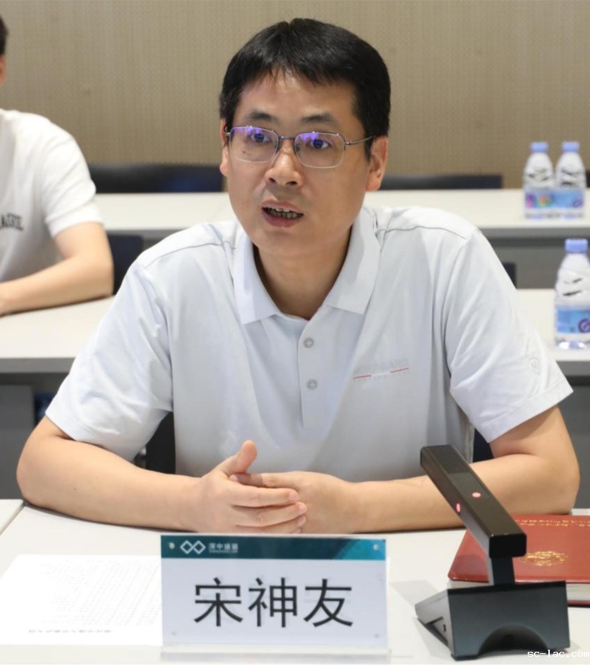 参观结束后,双方进行了交流座谈。广东省公路建设有限公司党委委员、副总经理宋神友出席并致辞。他详细介绍了深中通道项目的具体情况、管理中心的运营情况以及智慧运营管控平台和数字孪生技术的应用。他表示,双方在交通领域有着广泛的合作前景,期待双方能够进一步加强交流与合作。