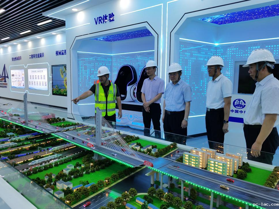 在新建江西省九江市快速路(一期)跨庐山站立交工程建设现场,塔吊林立、机械轰鸣、车辆穿梭,一派热火朝天的景象。赖远明现场考察了双塔单索面预应力混凝土转体斜拉桥建设施工情况。新建九江市快速路(一期)全长15.1公里,是九江中心城区首条高架桥快速路。建成通车后,将连通九江长江大桥、九江庐山高铁站快速交通网,进一步优化九江路网布局,极大提升九江交通运输效率。