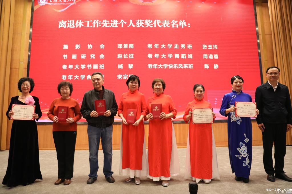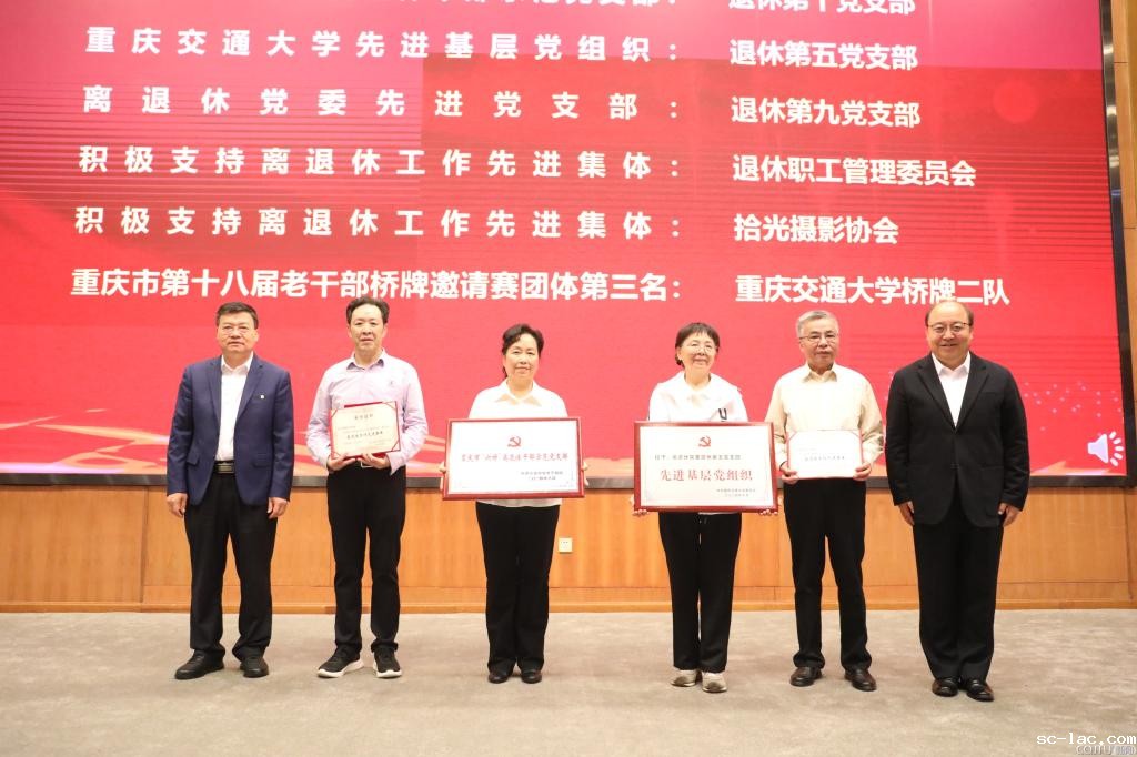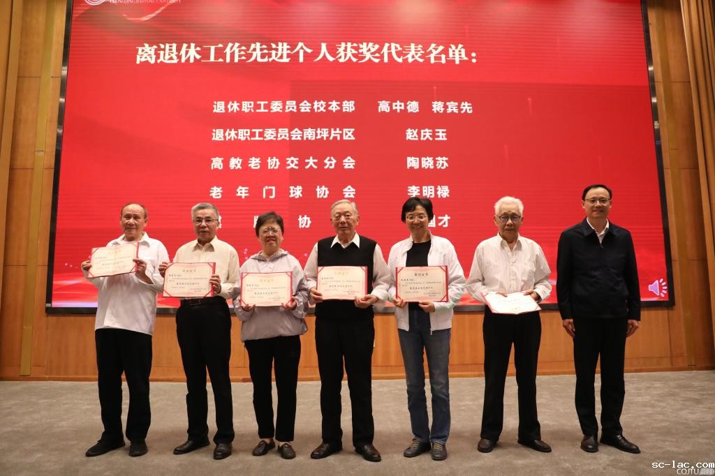 党委书记宫辉,党委副书记、校长赖远明院士为离退休获奖先进集体颁奖