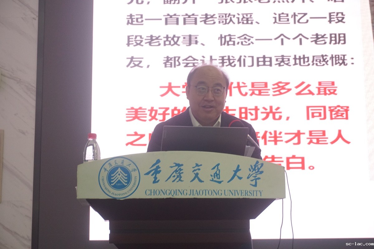 校党委书记宫辉对1974届返校的校友们表示热烈欢迎,并向他们送上节日祝福和诚挚问候。宫辉书记从学校建校历程、大坪校区的发展、学科专业建设、未来努力方向等方面介绍了学校的具体情况。一幅幅生动的画面,一张张鲜活的照片记录了1974届校友在学校的青春印记,校友们已从青涩少年成长为各自领域的中坚力量,再到退休后发挥自己的余热,在各自岗位上对国家航运事业发展付出了大量心血。宫辉书记强调,学校和学院发展离不开广大校友们的关心和支持,校友是学校宝贵的财富和资源,是学校创新发展的不竭动力,希望校友们能够继续为学校和学院的发展贡献智慧和力量。