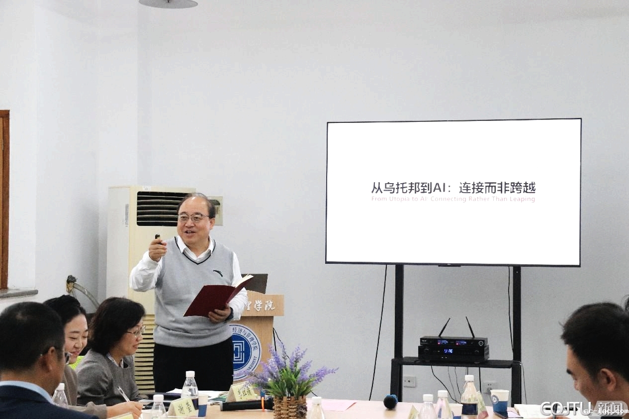 “高度自主、能够迭代优化和独立运作的AI Agent好比数字员工,预示着一个全新的生产力时代的来临”“科学技术是社会进步的关键因素……”一句句经典语句不断引起大家的共鸣和深度思考。10月17日下午,阵阵掌声和欢笑声不时从经管学院青椒工作室内传来,原来这里在举办一场别开生面的读书分享会。