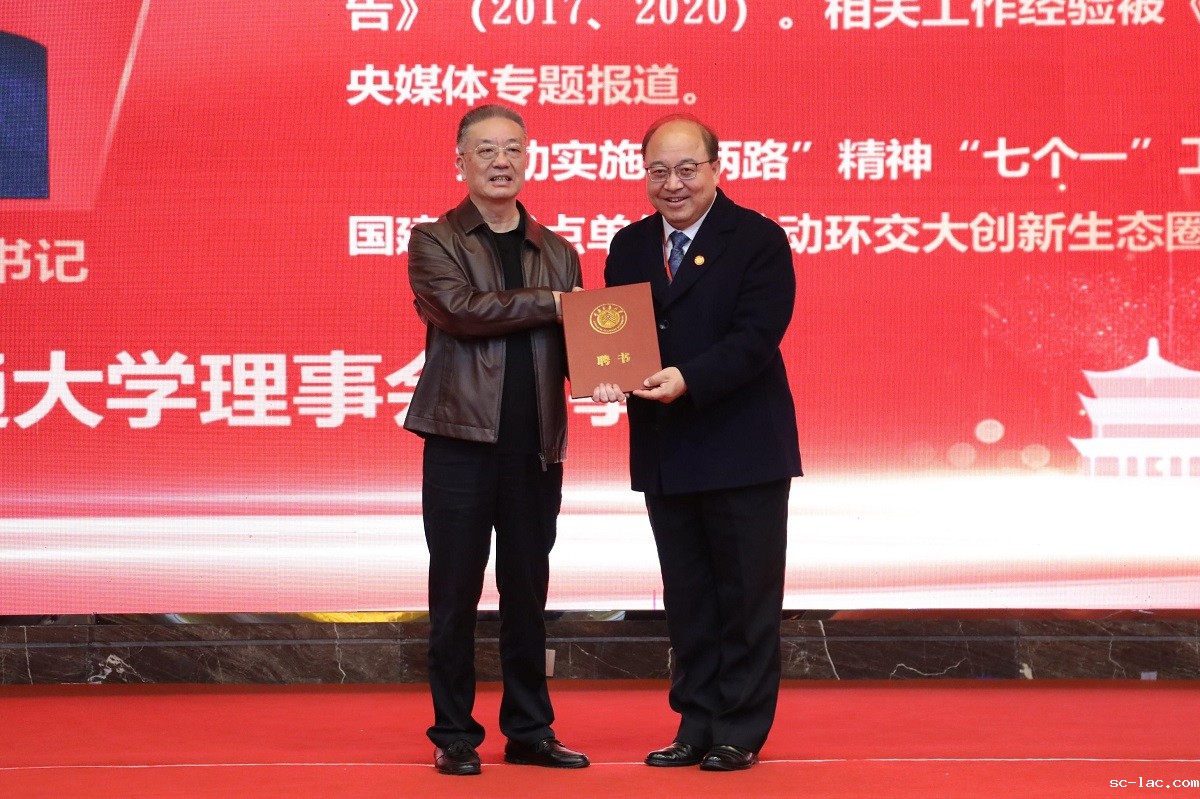 宫辉理事长、赖远明校长为新一届理事会副理事长、秘书长颁发了聘书。