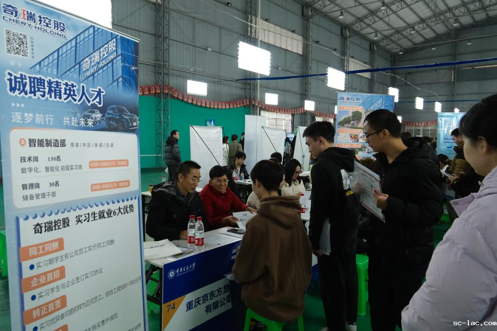中国交建、中国中铁、华峰铝业有限公司、奇瑞汽车、重庆京东方显示技术有限公司、同炎数智科技(重庆)有限公司、重庆苏宁易购销售有限公司等129家企事业单位参与招聘,提供岗位1500余个,其中留渝就业岗位占比达50%,涵盖建筑工程、交通运输、信息技术、智能制造、贸易服务、教育培训等多个行业。招聘现场人声鼎沸,3000余名毕业生积极参与招聘活动,投递简历4000余份,约700名毕业生获得面试机会,企业意向签约人员超过200人,其中中交二公局、中交二航局、中铁二局等单位现场立即签约了毕业生。