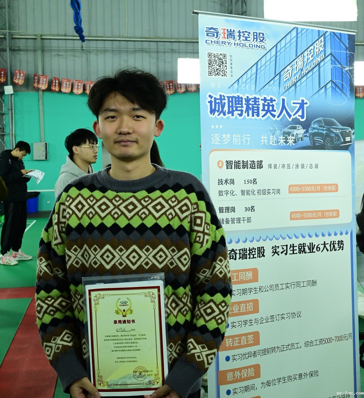参会的交大学子们也展现出蓬勃向上的精神面貌和积极的求职心态。来自机电学院的25届毕业生吕同学参会前就做好了精心准备,目标直抵奇瑞汽车股份有限公司,经过激烈竞争,现场面试成功,获得了难得的《录用通知书》,并将于近期前往单位接受实习指导。吕同学说,尽管今年整体就业形势比较严峻,但学校为同学们提供的就业资源还是很丰富。今年应聘有个显著特点是“岗位不等人”,他建议同学们在参加招聘会前一定要做足功课,要多听多看多问,机会来临时不要犹豫,牢牢把握签约机会。